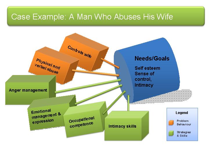 In the example above, the clients can learn to understand his emotional experience better and develop new strategies to deal with them. In terms of gaining control over his environment and getting people to respond to his needs, aggression and violence are the only means he knows. He needs to learn interpersonal and relationship skills, which he has not really mastered through his life. Given his restricted life chances and limited social exposure, he has not really explored different strategies of pleasure. There are many new strategies and skills that he can learn and develop in order to address his needs and goals effectively.